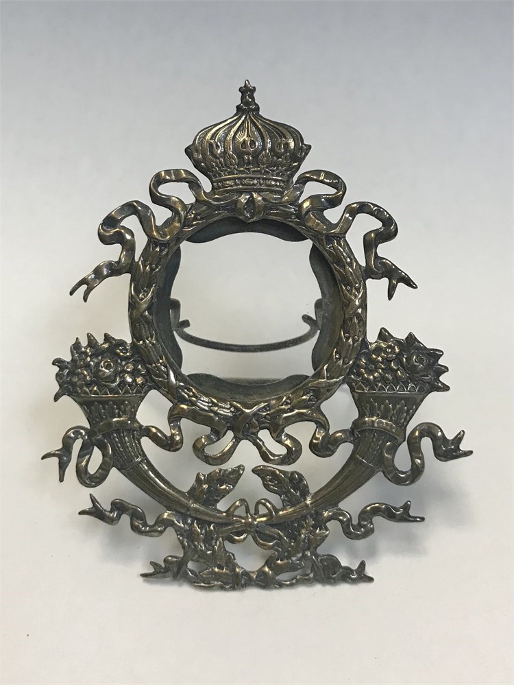Antique mini photo frame, entirely sterling silver other than the glass.  It's highly detailed with crown, floral cornucopia, more.  Marked Sterling 3 times!  Also Howard & Co., New York, 1898, see photo.  Super sweet little find.
