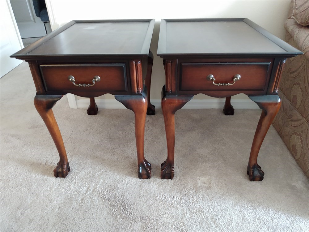 Great pair of end tables in good condition. Cherry or Mahogany finish.  Good condition.