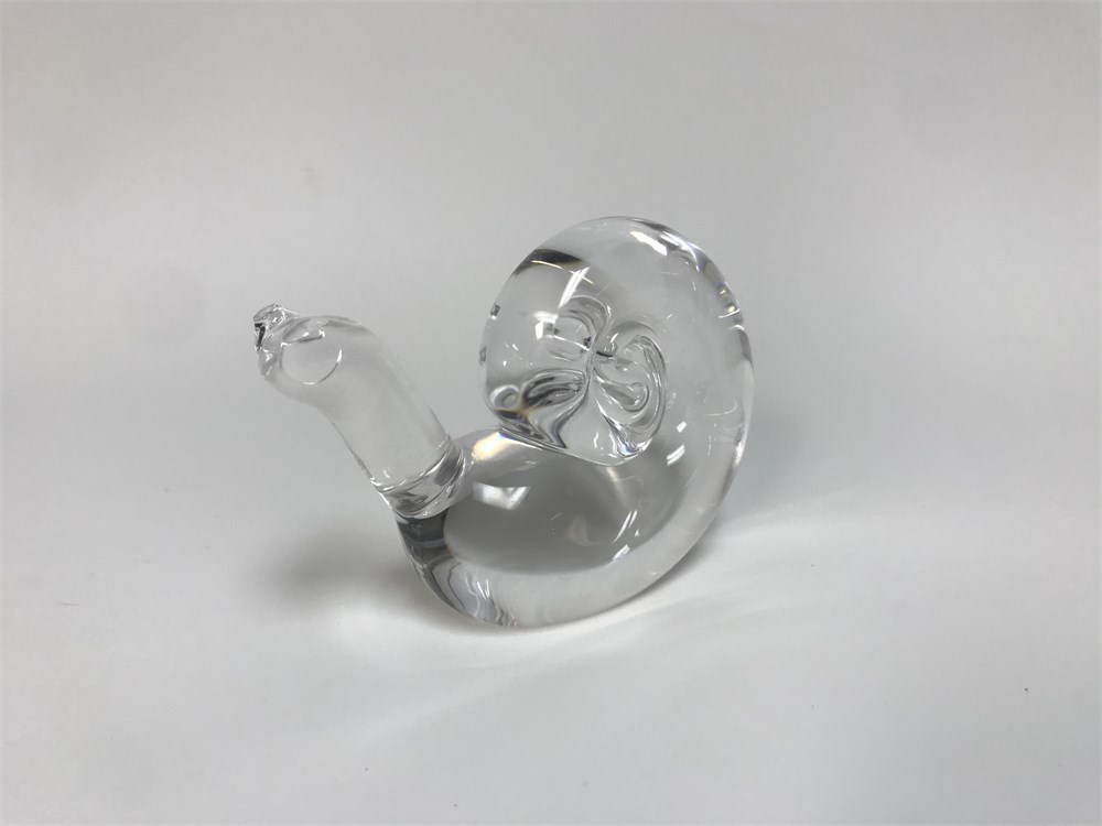 Snail paperweight, gleaming crystal by Steuben Glass.  Signed on the bottom.  No damage.