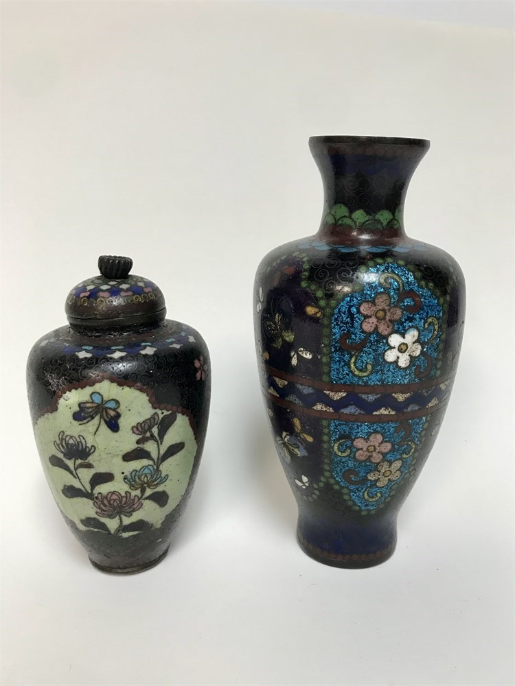 Small Antique Cloisonne Vase and Covered Jar