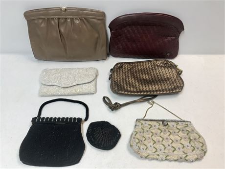 Vintage purses including Aigner, Ganson, Morris Moskowitz, others.  Some are leather; some are beaded.