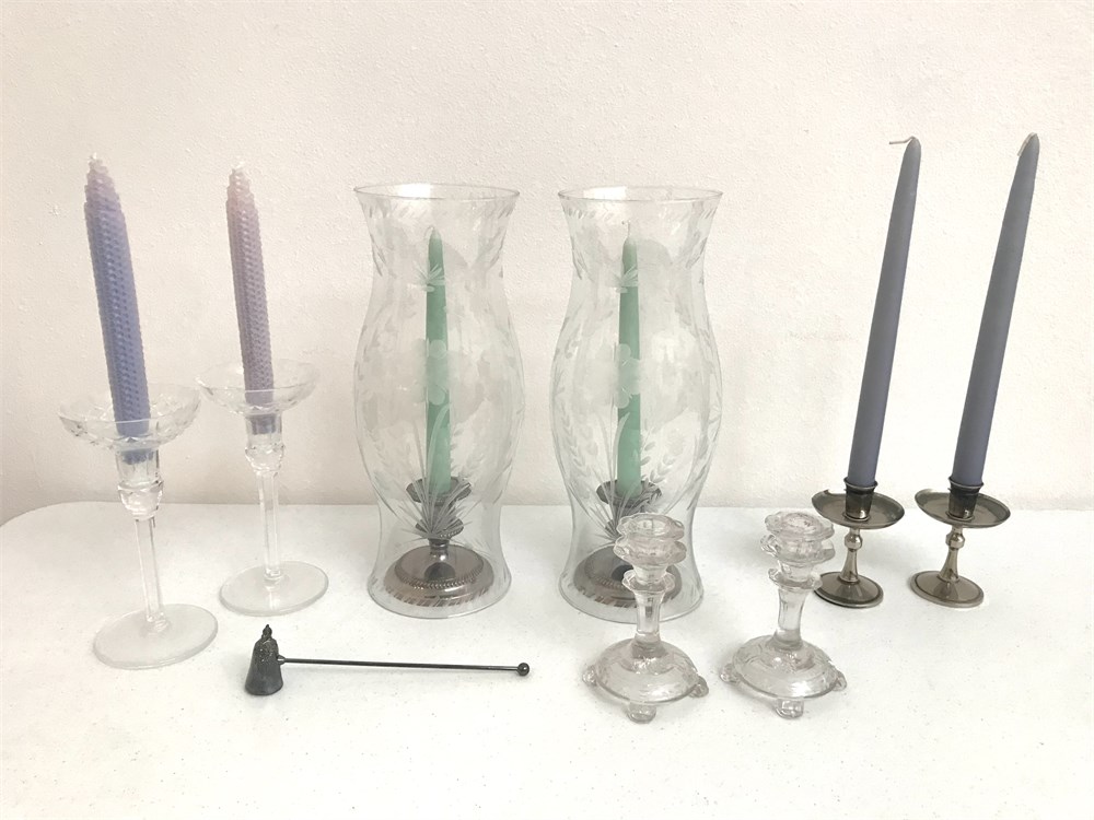 Silverplated and Glass Candlesticks Group: Birks, Tyrone, More