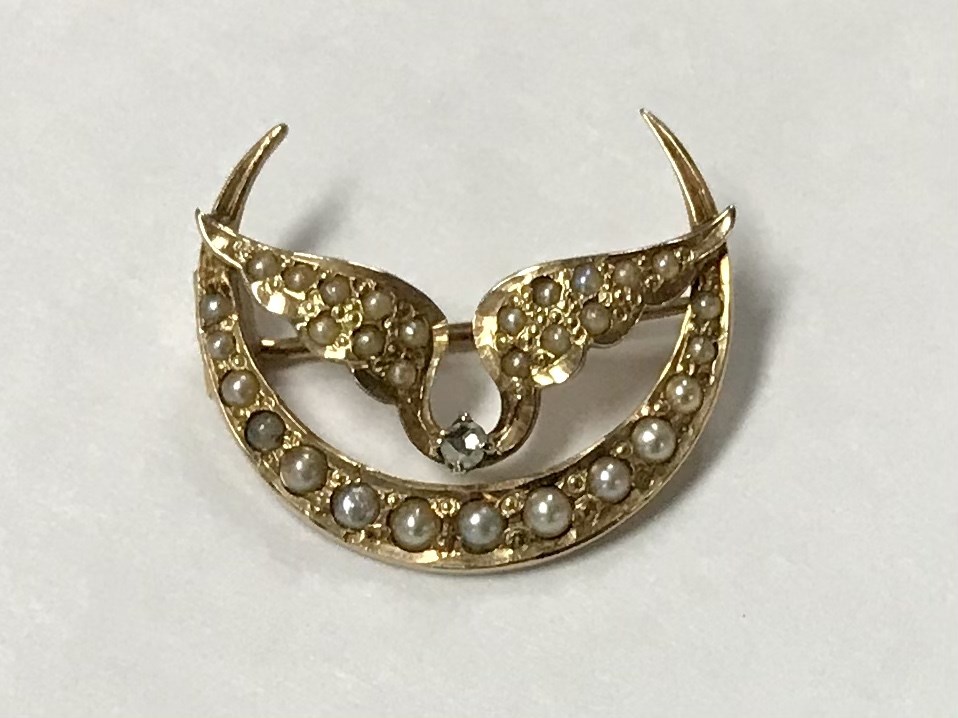 Antique Pin, Half Moon and Wings, 14K Yellow Gold (1.4 g)