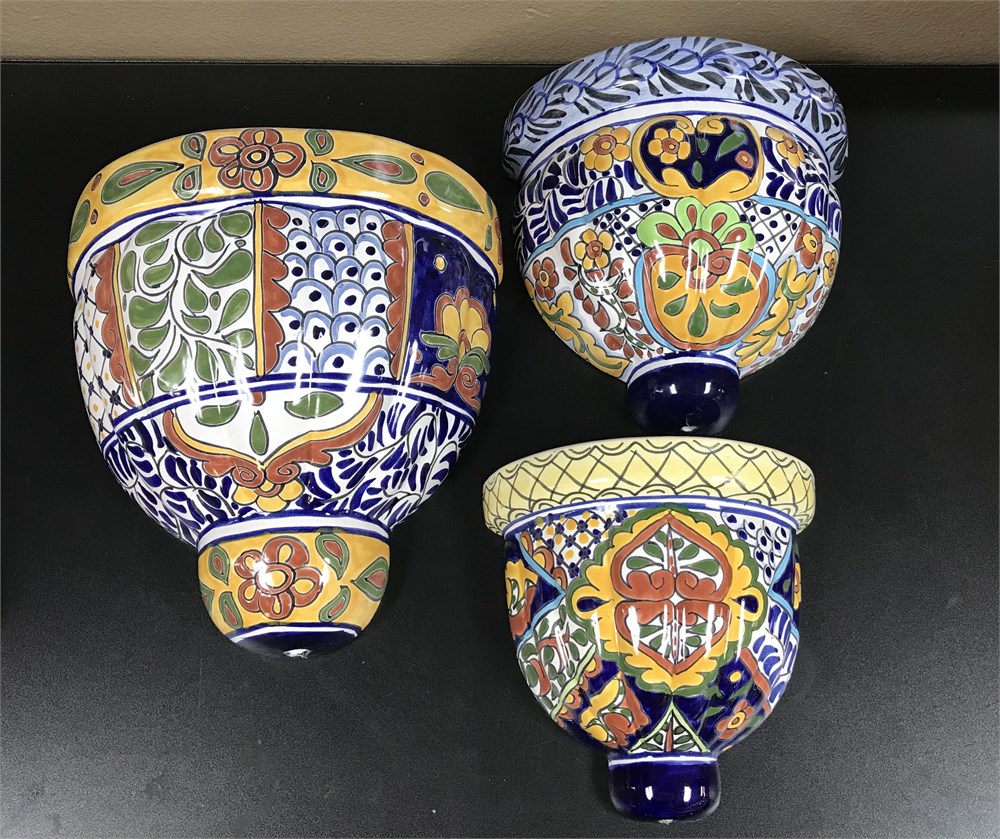 Set of 3 Talavera Mexican Pottery Wall Planters