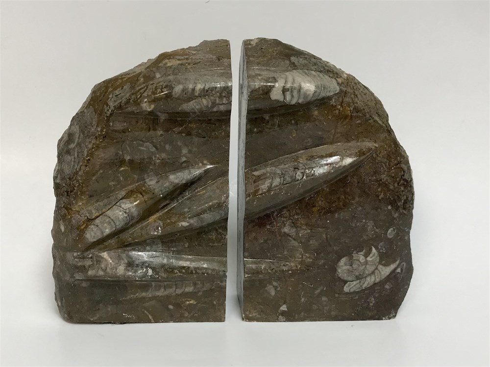 Fabulous orthoceras fossil bookends, polished on the front, see photos for the interesting details.