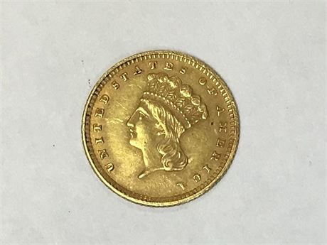 Indian Head Gold Dollar Coin, Type III, with Planed Reverse