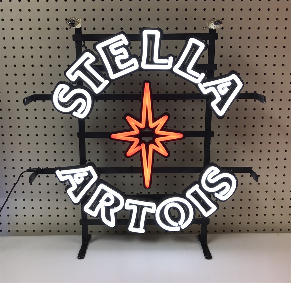 Like new. A modern lighted sign, it's LED made to look like neon, advertising Stella Artois beer.