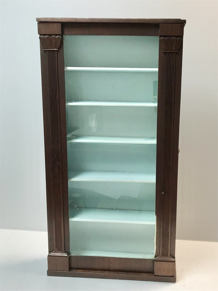 Antique Wood Wall Cabinet with Glass Front
