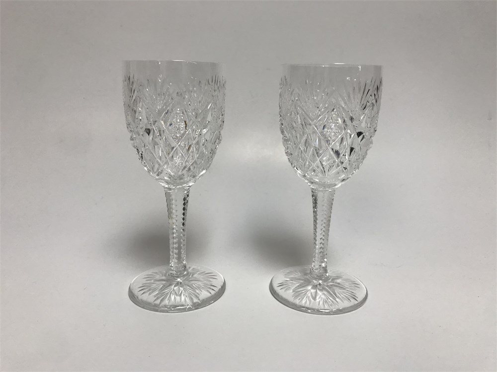 2 St. Louis French Crystal Wine Glasses, "Florence" Pattern, Pineapple Cut