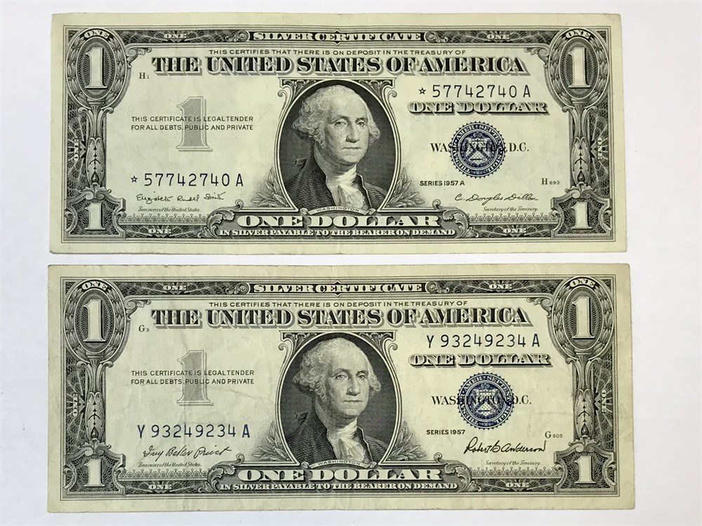 2 Silver Certificates: 1957 and 1957A.  One is a star note.