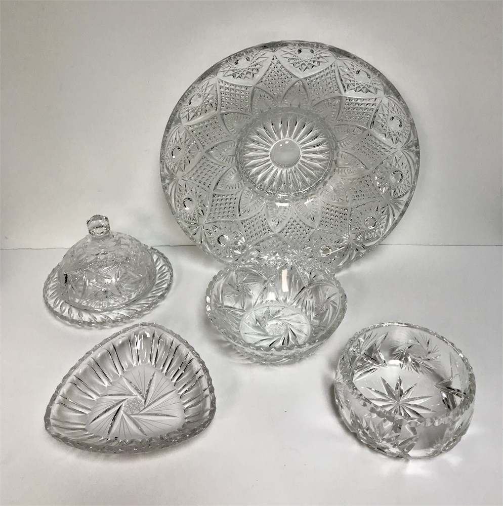 Wheel Cut Crystal Butter Dish, Bowls, More