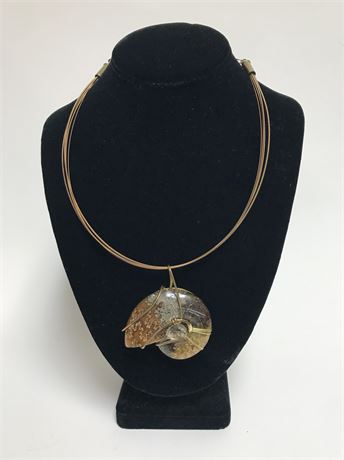 Wire Wrap Necklace: Large Fossilized Ammonite Shell