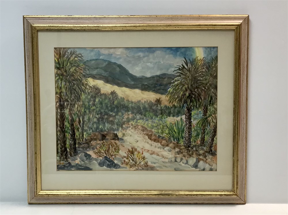 Tropical landscape watercolor painting, signed Kalliga.  We believe this is Russian artist Vladimir Kalliga (1900-1986).