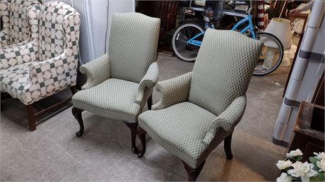 More formal looking chairs.  They sit nice.  One has a small spot on top, but overall they are very clean and well kept.