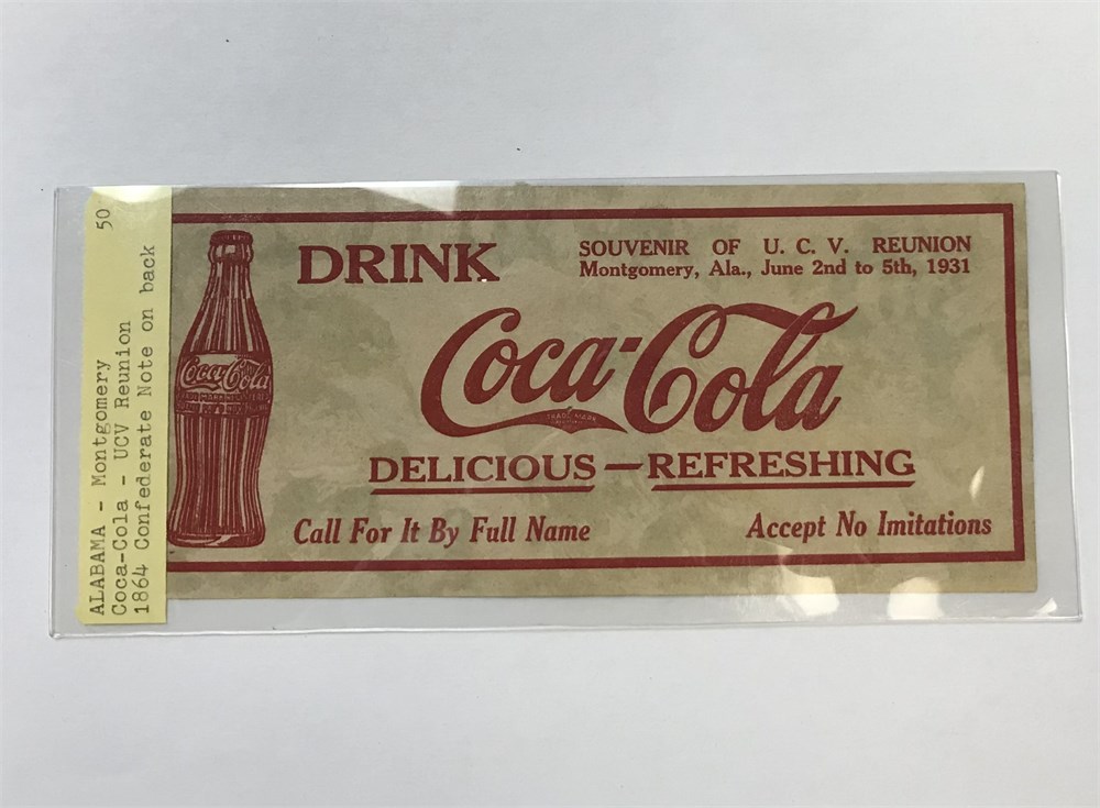 Coca-Cola Advertisement on $50 Confederate Currency from UCV Reunion