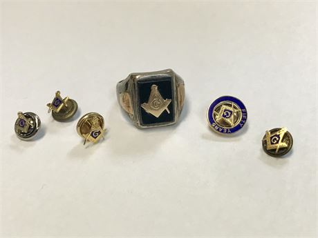 Masonic Sterling Silver Ring, Masonic Pins, Some Gold