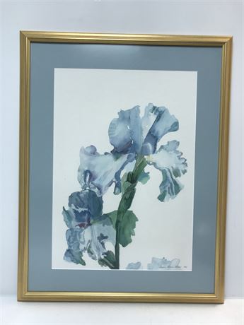 Suzanne Harmon Havens Irises Watercolor, Framed