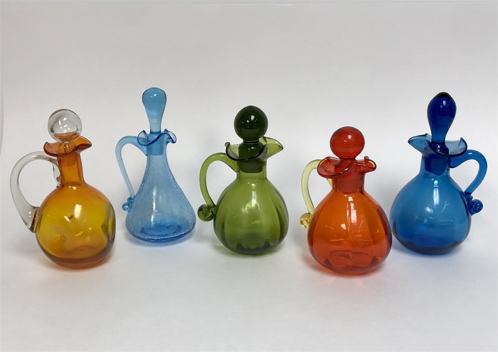 Retro Colored Cruets: Pinched Glass, Crackle Glass, Amberina, More