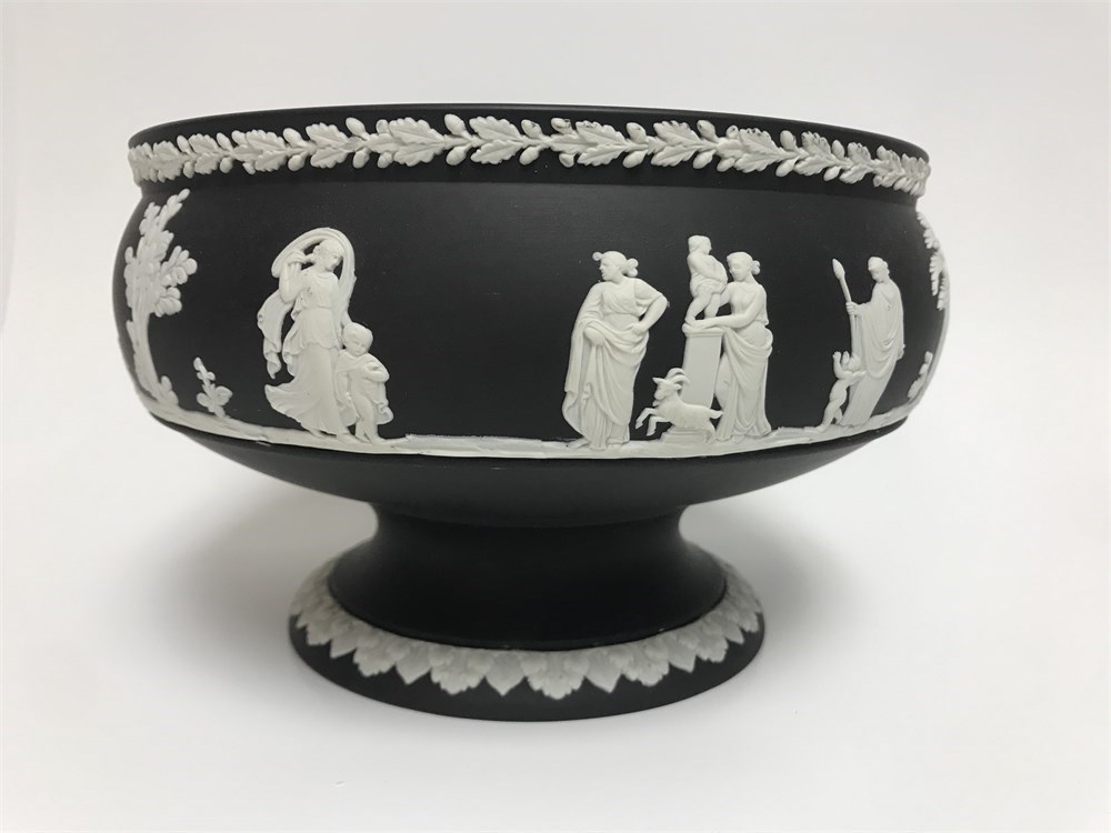 Wedgwood Black Jasperware Pedestal Centerpiece Bowl