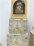 Boxed pieces include: thimbles set, birthday clown, Seth Thomas clock, musical bride/groom, piggy bank, flower dome, photo frame, Christmas musical, other figures.  Plus unboxed pieces: bell, tiny pillow, tiny flower pot.  Variety lot!