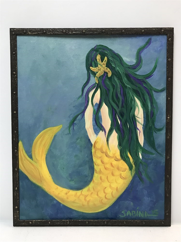 A cheerful small art piece for your Florida home.  Original painting on canvas, signed Sabina.