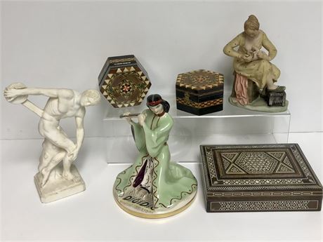 Inlaid Wood Boxes, Discobolus Sculpture, Nursing Mother Figure