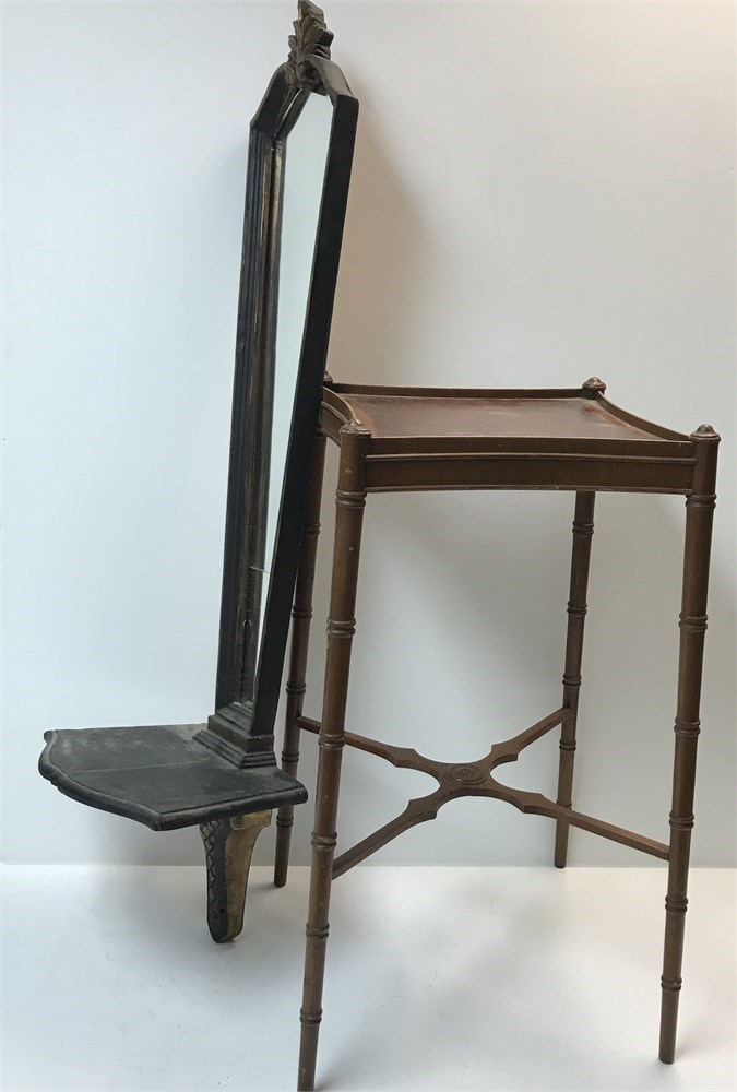 Antique Plant Stand Table, and Mirrored Wall Shelf (as is)