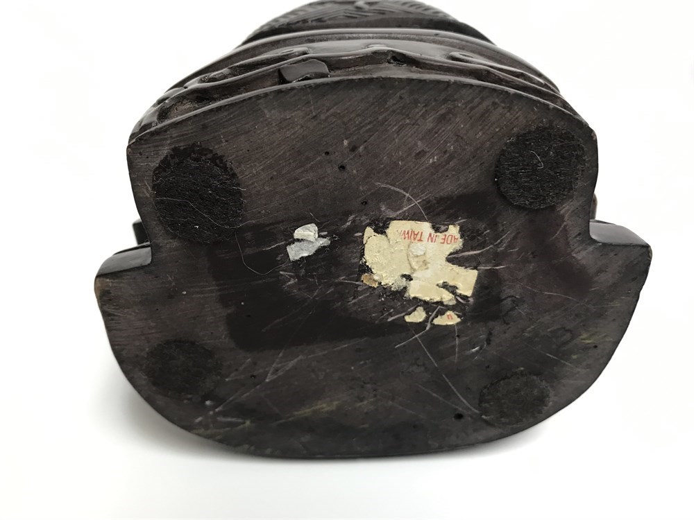 Resin figures with many details.  Partial tag says Made in Taiwan.  About 9" tall.