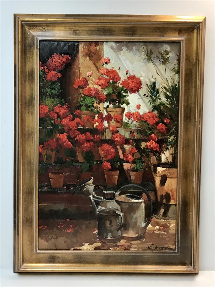 W. Honner Original Oil on Canvas Painting of Geraniums