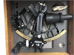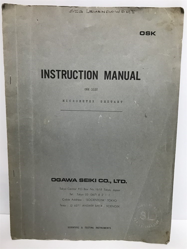 Impeccably kept over the years, from the Captain's estate.  OSK 3332 Micrometer Sextant by Ogawa Seiki Co, Japan.  Includes the precision instrument, the instruction manual, wood box with key, and a warning for others to keep their hands off! :)  Nice find.