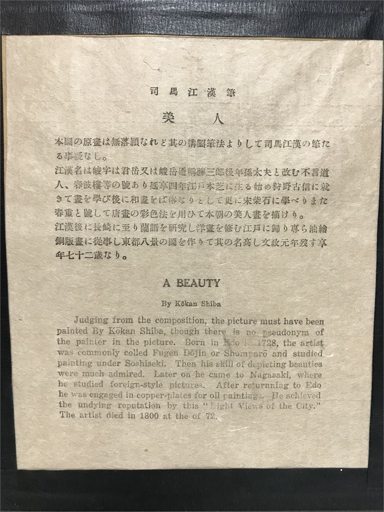 "A Herbing" by Hokuba Teisai, and "A Beauty" by Kokan Shiba