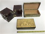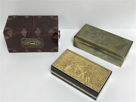 A nice polished wood jewelry box, two parts, hinged, with lots of brass accents.