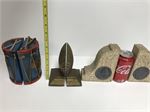 Vintage "Lego" brand Americana drums.  A pair of brass-plated (probably) seashells.  And 2 corbels style "This Stone Came from the Houses of Parliament."