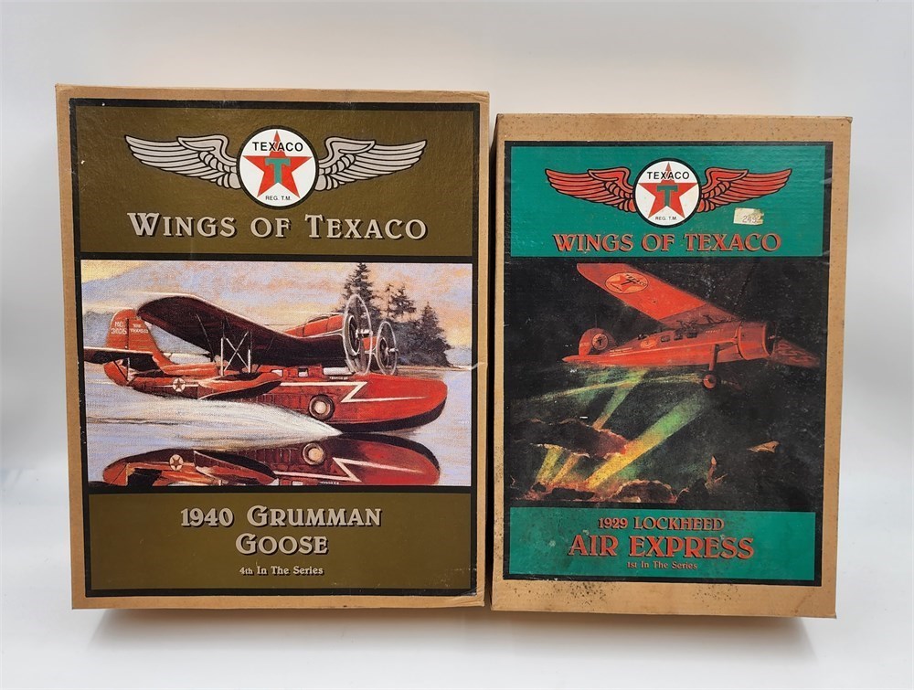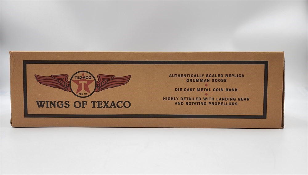 The first model is a 1940 Grumman Goose, which is the 4th model in the "Wings of Texaco" series. It's features include authentically scaled, die-cast metal construction, and coin bank.