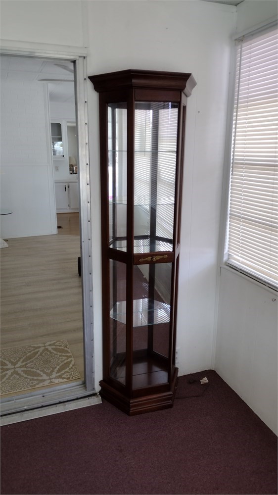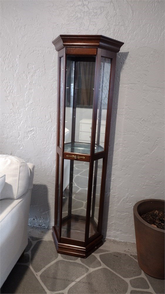 Small lighted curio cabinet.  Cherry finish, and has glass shelves.