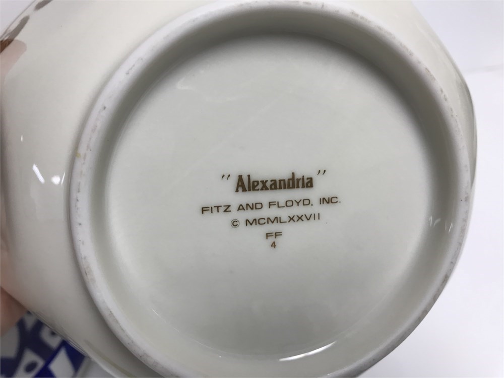 3 serving bowls in good condition.  Collectible brands; Spode Imperial (all white with relief design); blue-and-white Dansk; gold-trimmed "Alexandria" by Fitz & Floyd.