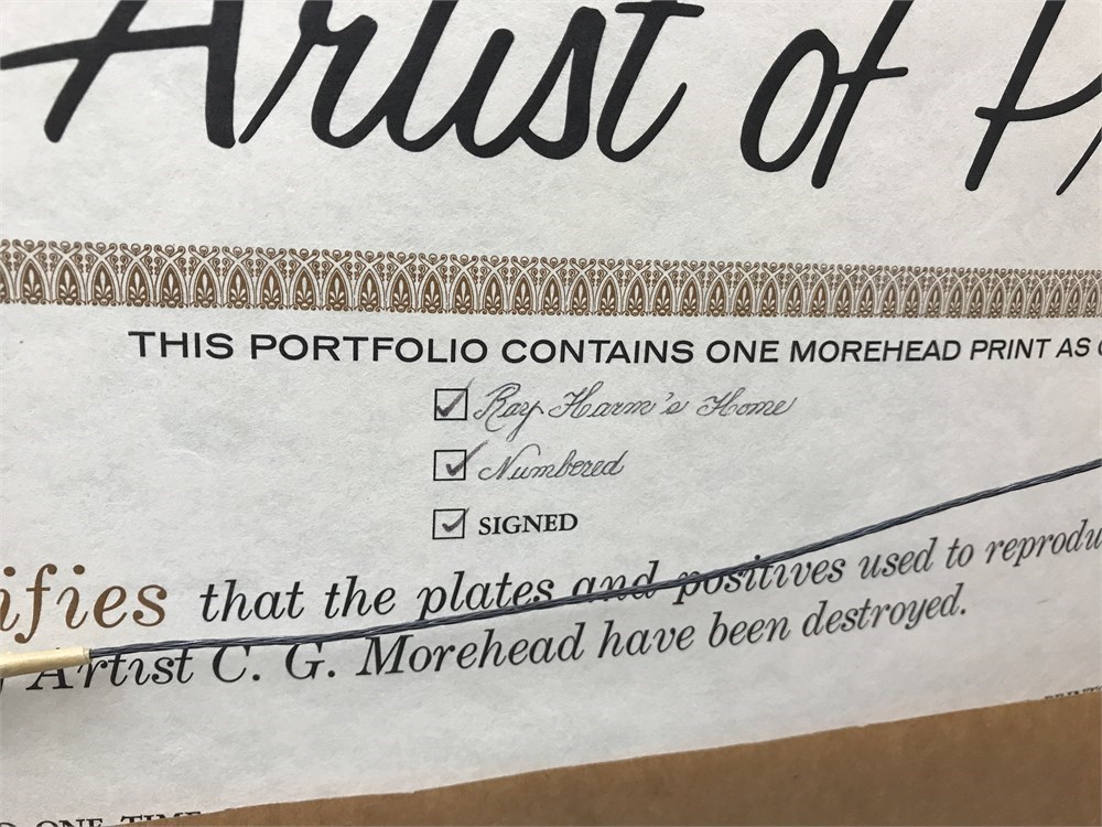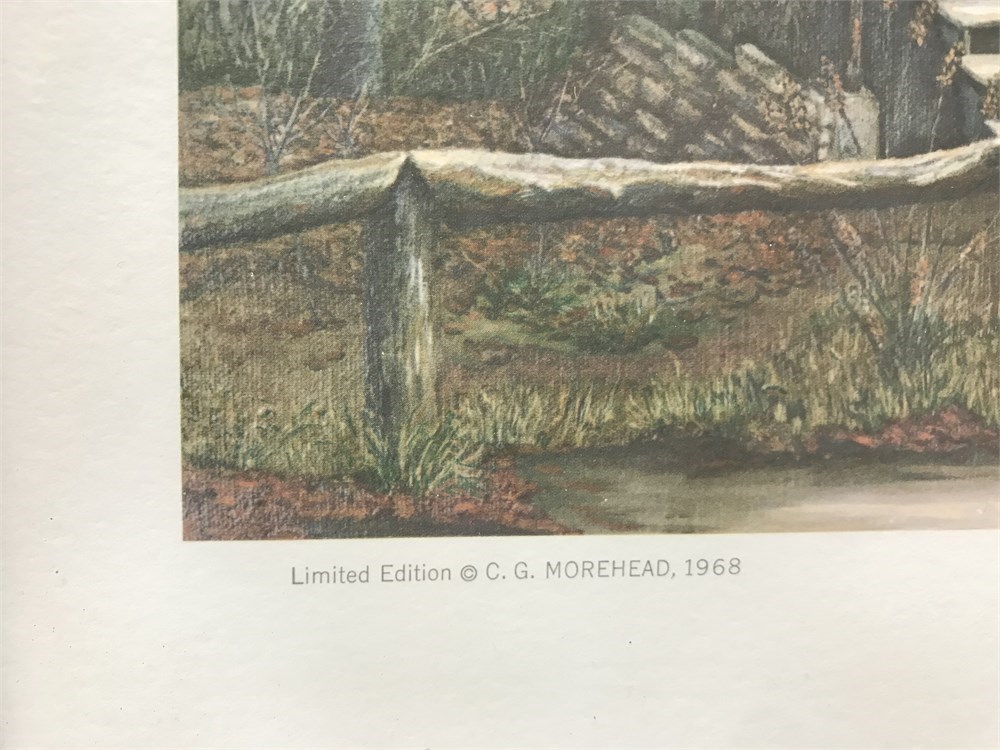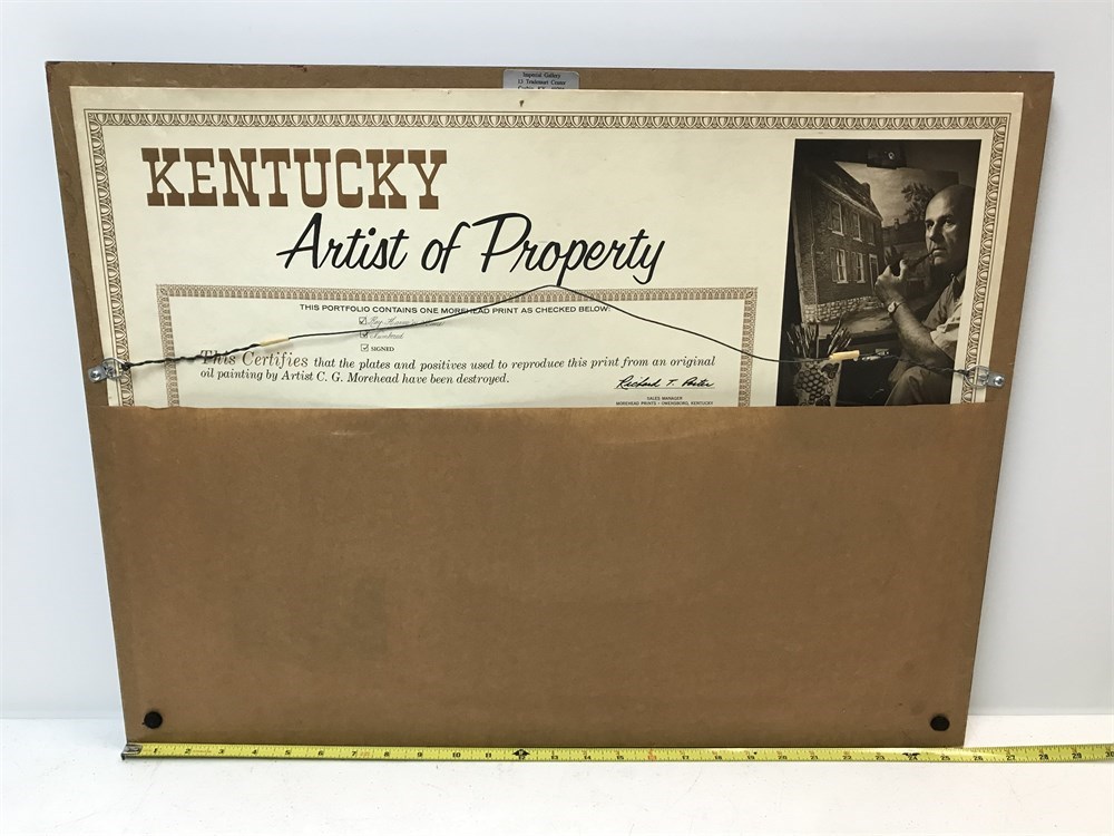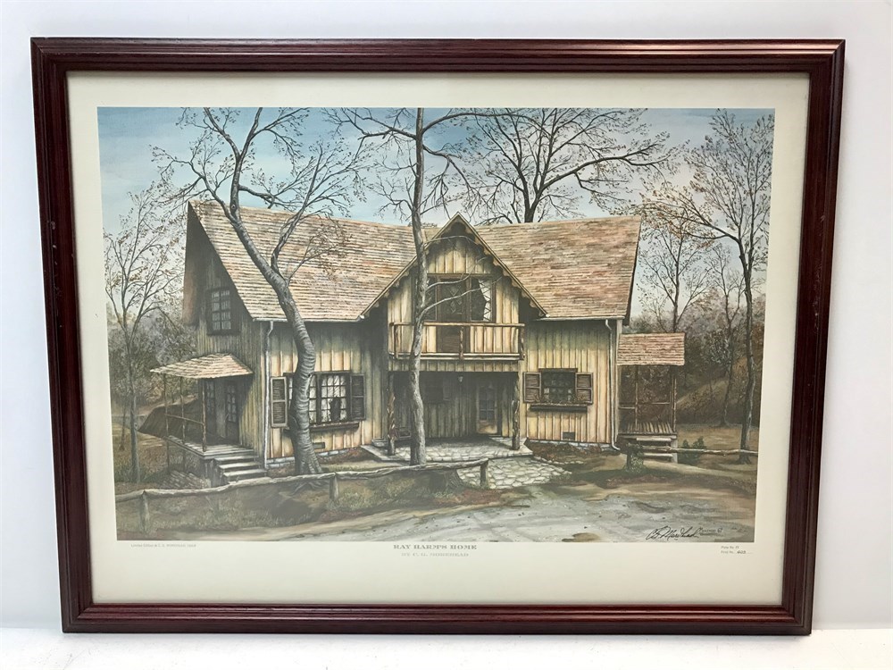 Limited edition print by renowned Kentucky artist C.G. Morehead, of fellow artist Ray Harm's home.  Professionally framed with the certificate on the back.