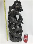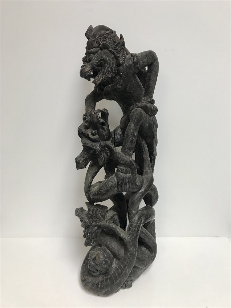 Carved statue from Indonesia/Bali includes monkeys (Hanuman?) and at least one snake.  Very interesting!  It's probably ironwood, has lots of detail, and please note that the wood has splits and chips.