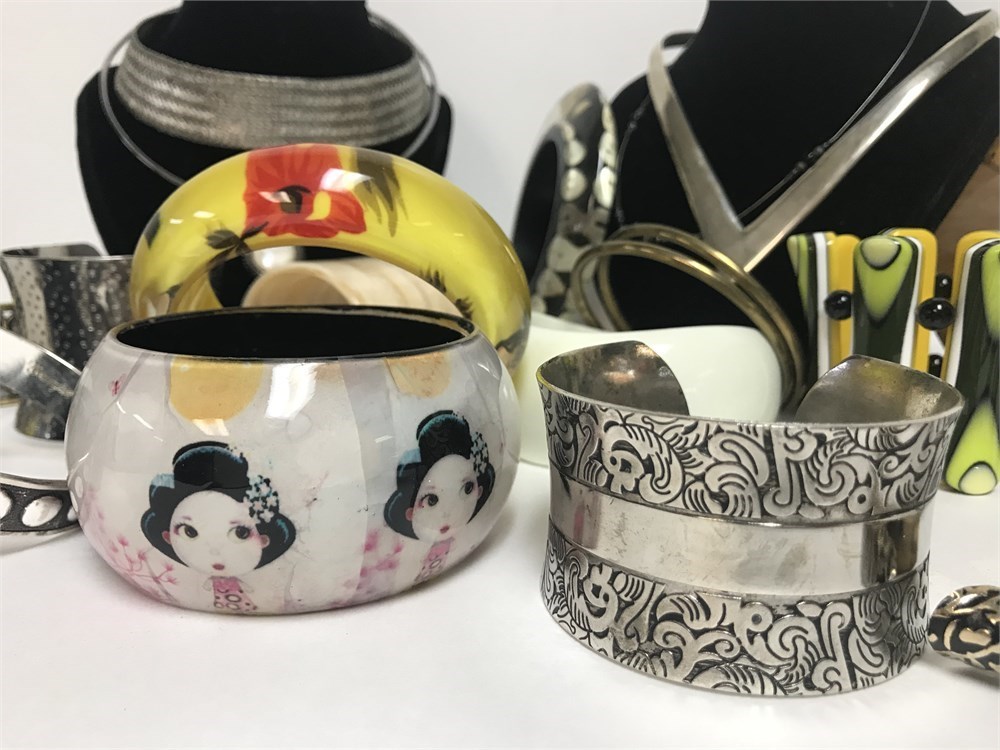 If you like to make a statement, there are some large and interesting cuffs and bangles here... plus more.  Mostly bracelets, and 4 necklaces.  Displays not included.