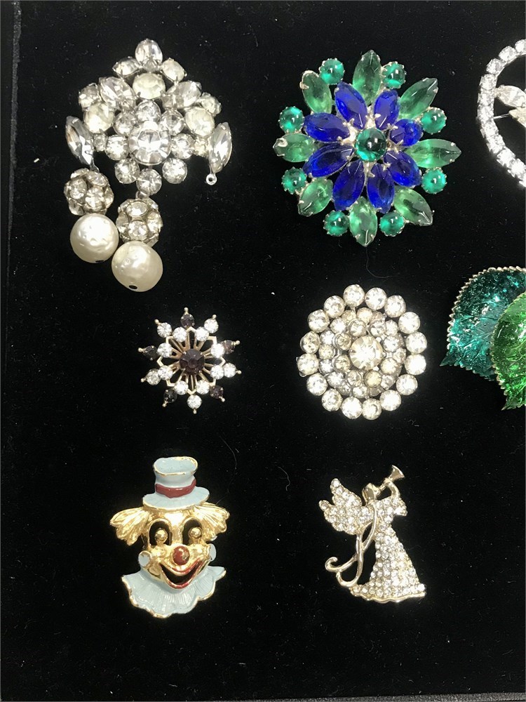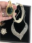 Vintage Jewelry Group: Rhinestone Pins, Necklace, Grosse 1967 Brooch, More