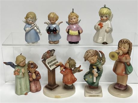 The other 4 are Hummel, ranging from 3.5" to 5" tall.  3 of these have their original paper labels: Little Gabriel, Heavenly Angel, Little Guardian.