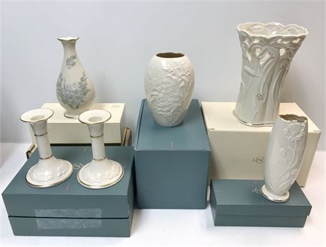 All in good condition with boxes.  Lovely Lenox vases including Mother's Day, Lilies of Love, more.  Also a pair of Fruits of Life candlesticks.