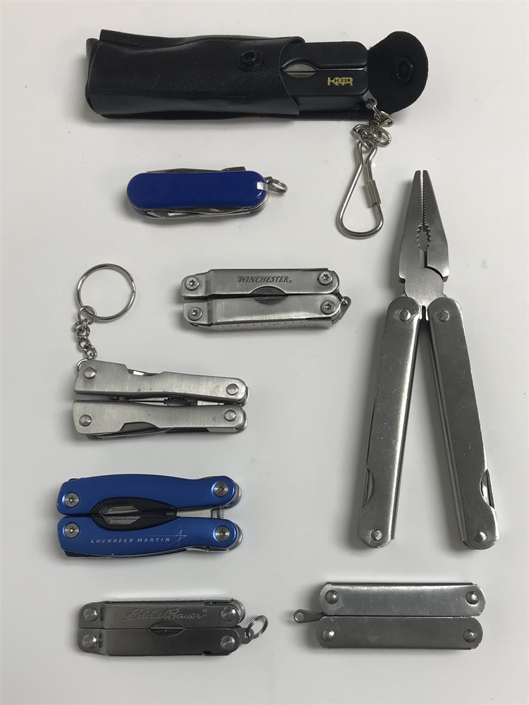 8 assorted multi-function knives/tools.  Good for fishing and just to have handy.  Winchester, Lockheed Martin, other brands.