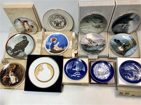 13 plates total.  All with boxes except one.  The Franklin Silent Night plate is nice, with paperwork and fancy box.  Also 3 B&G/Royal Copenhagen plates.  And others including eagles/birds.
