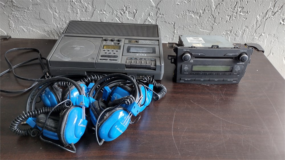 Condition unknown, may have came from school surplus as the unit allows up to 4 headsets to plug in.  The headsets we have are peeling in the foam area.  If you look these up online you are going to find stuff in the $50 range.  Again, I do not know how well it will work.