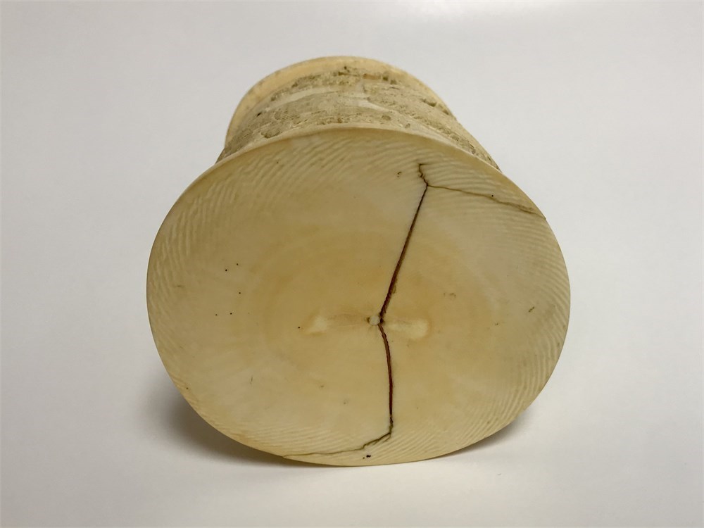 Antique Ivory Brush Pot Carved with Chickens and Birds