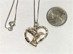 Bright silver jewelry group: 3 pretty pins glinting with marcasites; also a marcasite necklace; pair of earrings.  An engraved bangle bracelet; and a hummingbird heart necklace.  All pieces marked as sterling and/or 925.