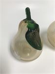 2 life sized fruits made with shimmery gold-fleck glass, probably Murano.  They have paper sticker residue on the sides.  Not paperweights; they're hollow.