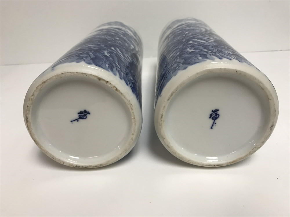 Asian pottery vases (hat stands).  Painted mark shown in photo.  Good condition.