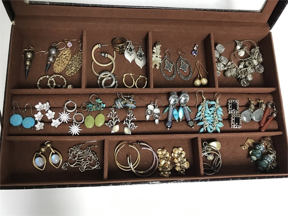 2 jewelry organizers containing many pairs of earrings.  These are nice costume jewelry pieces, ready to wear.